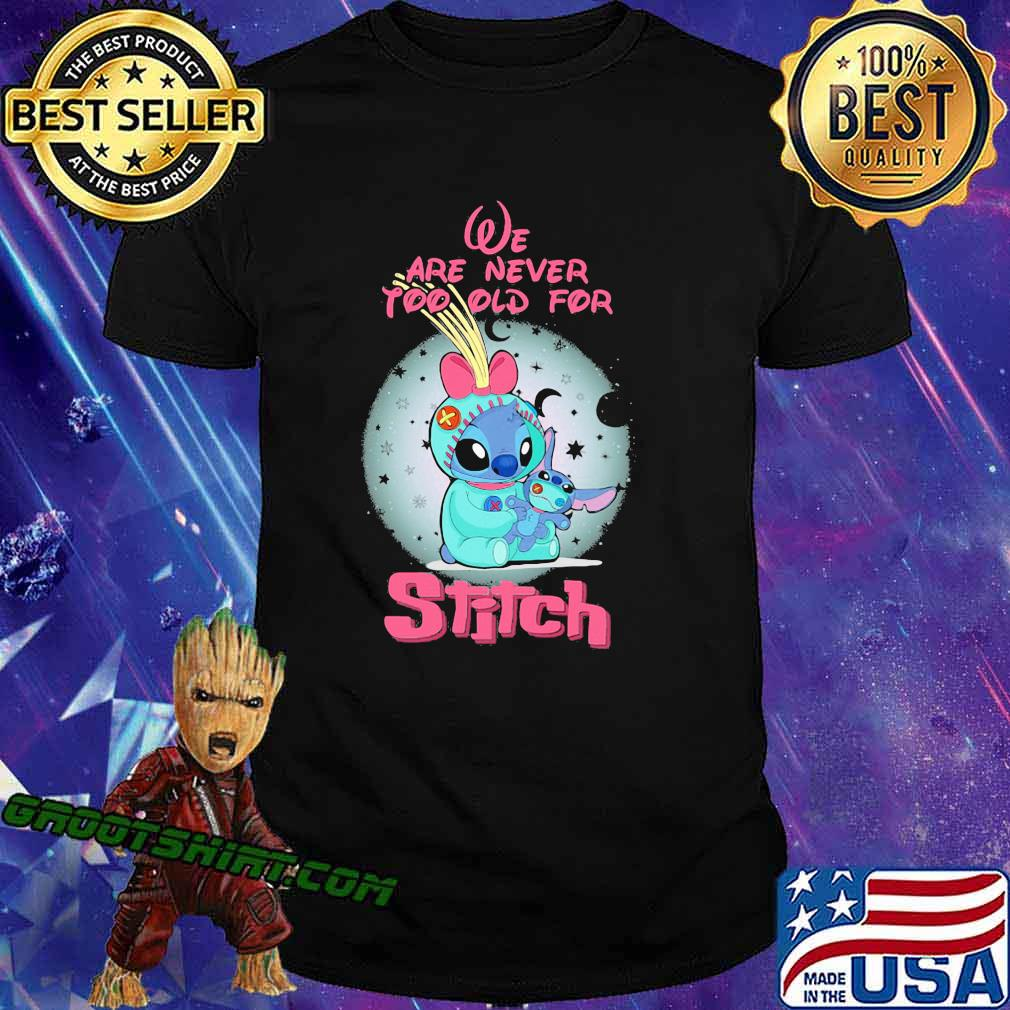 We are never too old for stitch shirt, hoodie, sweater, long sleeve and tank top